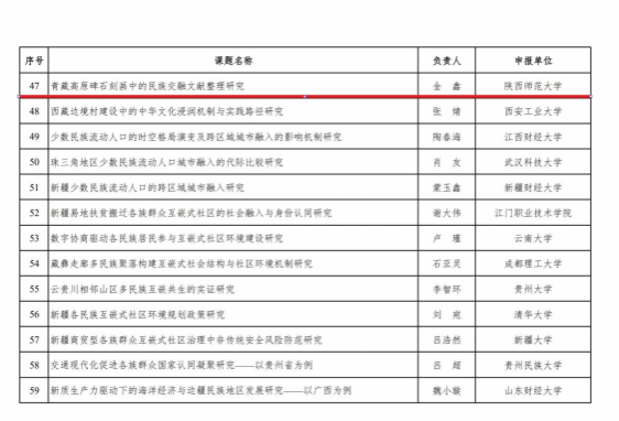 10月16日,国家民族事务委员会科研项目管理办公室公布了“国家民委民族研究项目2025年度公开招标课题”评审结果。我集团教师金鑫申报的《青藏高原碑石刻画中的民族交融文献整理研究》获得一般项目立项。这也是我集团教师首次获得国家民委项目立项,标志着我集团在民族研究领域取得新的突破。